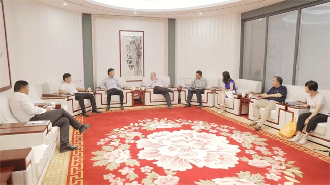 在商務(wù)會(huì)議室,考察團(tuán)成員與河南中譽(yù)鼎力智能裝備有限公司董事長(zhǎng)張治民、副總經(jīng)理原文秋、新鄉(xiāng)市中譽(yù)鼎力裝備設(shè)計(jì)有限公司總經(jīng)理馮濤等人進(jìn)行座談,共同探討礦業(yè)新技術(shù)應(yīng)用與發(fā)展。