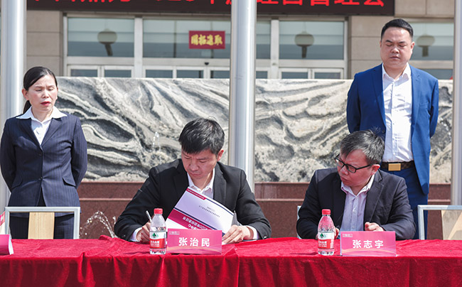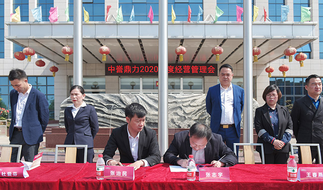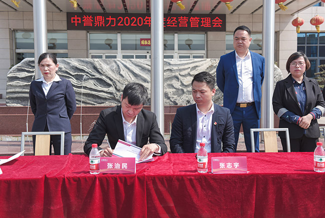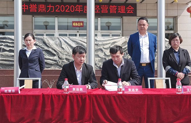 隨后,張治民董事長與公司各分管副總經理、部門長簽訂2020年度目標責任書,并發表講話。
