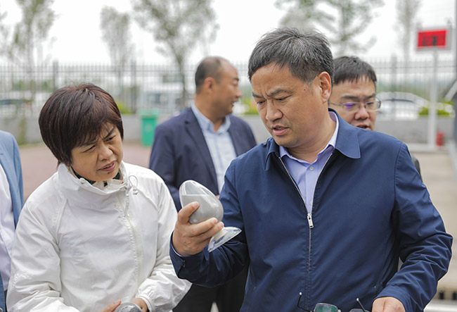 當天下午,省、市發改委導深入河南中譽鼎力智能裝備有限公司、衛輝市藍天環保材料有限公司,了解砂石采礦權、機制砂生產銷售、機制砂設備制造推廣等相關情況。衛輝市長范士富、常務副市長李志勇、發展改革委主任劉寧、副主任姚華,河南中譽鼎力智能裝備有限公司董事長張治民、總經理等陪同,并介紹各項情況。