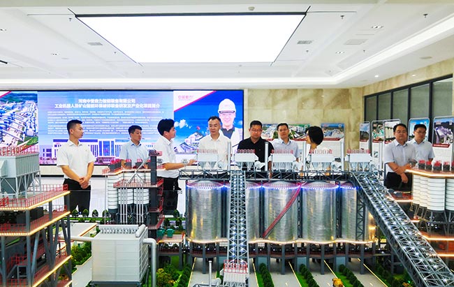 在中譽鼎力智能裝備有限公司綜合辦公樓,移動公司考察團先后參觀了中譽鼎力企業文化墻、礦山管理云數據和多位一體循環建材產業園項目沙盤,對中譽鼎力主營業務及近年來發展情況有了進一步了解。