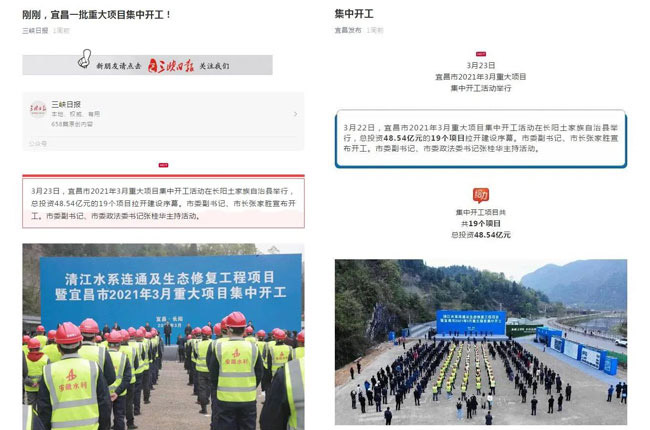 3月底,湖北省宜昌市2021年3月重大項目集中開工活動在宜昌市長陽土家族自治縣舉行。總投資48.54億元的19個項目集中開工,其中包含中譽鼎力規劃設計并提供礦山設備的長陽砂石集并中心年產1000萬噸砂石生產線擴能項目。三峽日報、宜昌發布、三峽廣電、環球破碎機網等多家媒體競相宣傳。