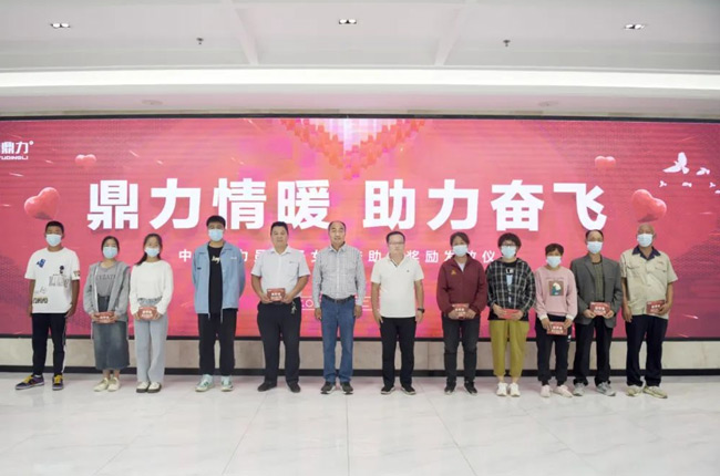 河南中譽(yù)鼎力智能裝備有限公司總經(jīng)理?xiàng)钋⑿姓耸驴偙O(jiān)劉玲、遠(yuǎn)大集團(tuán)執(zhí)行總裁耿強(qiáng)和19名即將步入大學(xué)生涯的鼎力員工子女及其家長參加助學(xué)獎(jiǎng)勵(lì)發(fā)放儀式。