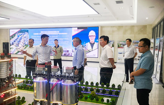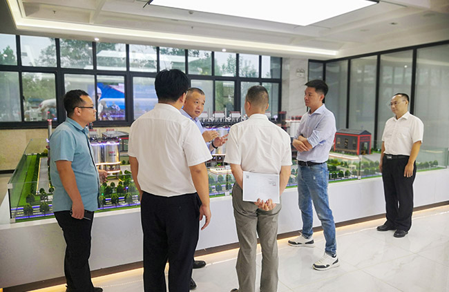 隨后,考察團來到中譽鼎力智能化展示,實地參觀了中譽鼎力多位一體循環(huán)建材產(chǎn)業(yè)園項目沙盤,并觀看了公司相關(guān)介紹。