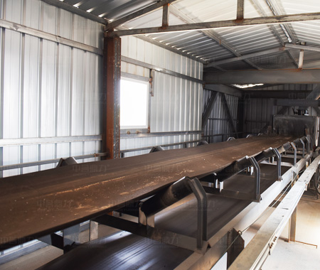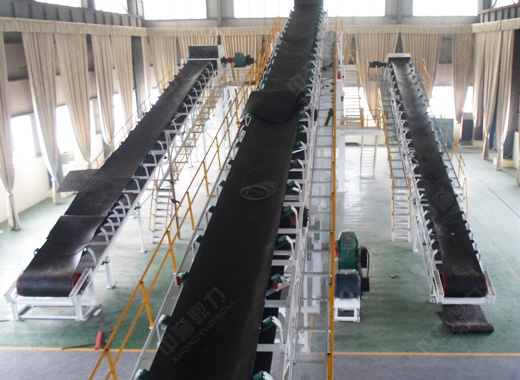 皮帶輸送機是一種摩擦驅動以連續方式運輸物料的機械,主要由機架、輸送皮帶、托輥、滾筒、張緊裝置、傳動裝置等組成。工作時驅動滾筒由電動機通過減速器驅動,輸送帶依靠驅動滾筒與輸送帶之間的摩擦力拖動。驅動滾筒一般都裝在卸料端,以增大牽引力,有利于拖動。物料由喂料端喂入,落在轉動的輸送帶上,依靠輸送帶摩擦帶動運送到卸料端卸出。