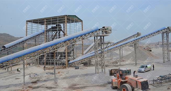 簡單概括為:料倉——振動給料機——粗碎機——細碎機——振動篩——成品石子,各設備間以輸送機相連。