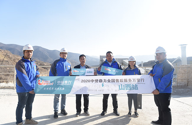 轉型升級,或許可以體現在建材環保化生產方面。在中譽鼎力山西服務銷售經理張文龍的帶下,售后服務萬里行團隊來到了位于陽曲縣陰山水庫的鑫錦威建材有限公司,并與生產線負責人白保平就項目現狀、設備運行、成品料裝車銷售等情況進行了溝通。